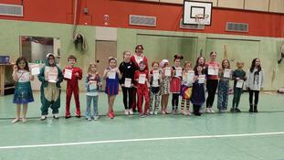 Die Kindertanzgruppe „Dance for Kids“ unter der Leitung von Nastassja Heinz freute sich besonders über den begeisterten Applaus vom Publikum für ihren Auftritt. Simone Köster, die Übungsleiterin aller drei Kinderturngruppen beim TSV, verlieh insgesamt 27 Kindern das Deutsche Sportabzeichen 2023 in Bronze (10x), Silber (14x) und Gold (3x). Das haben sich die Kinder in ihren Turnstunden durch Ehrgeiz und viel Übung hart erarbeitet. Die Geehrten nahmen ihre Urkunden und Nadeln stolz in Empfang.