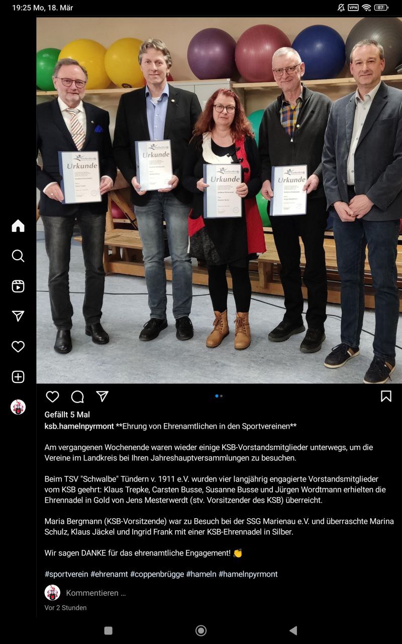 Ihr könnt die Ehrung durch den KSB auch bei Instagram finden: