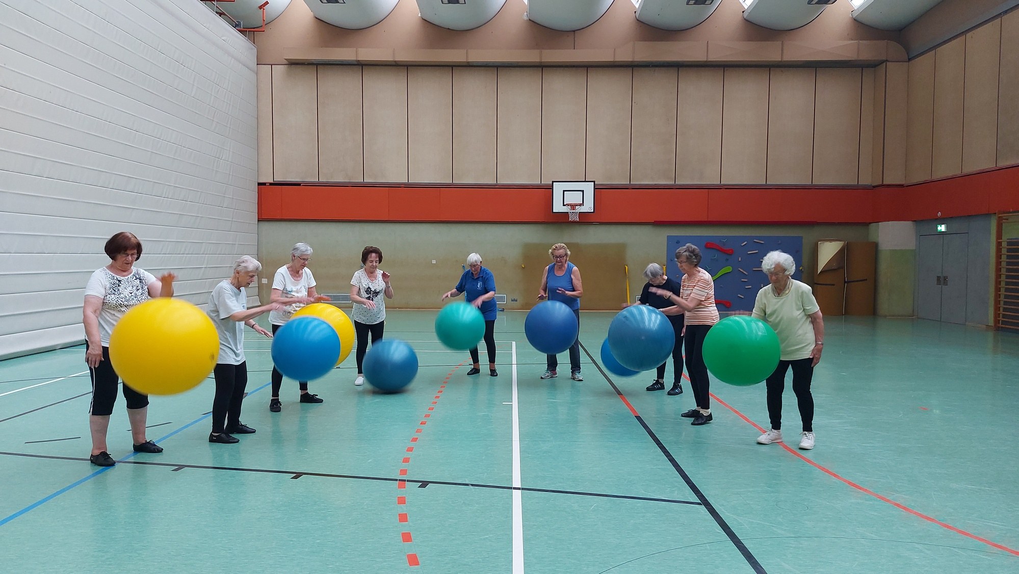 Durch den Einsatz unterschiedlicher Handgeräte sind die Stunden abwechslungsreich gestaltet. Ob Stäbe, Hanteln oder Brazils - mit flotter Musik geht alles leichter. Neben der Kräftigung und Beweglichkeit liegt ein Schwerpunkt auch auf der Sturzprophylaxe und dem Gedächtnistraining.