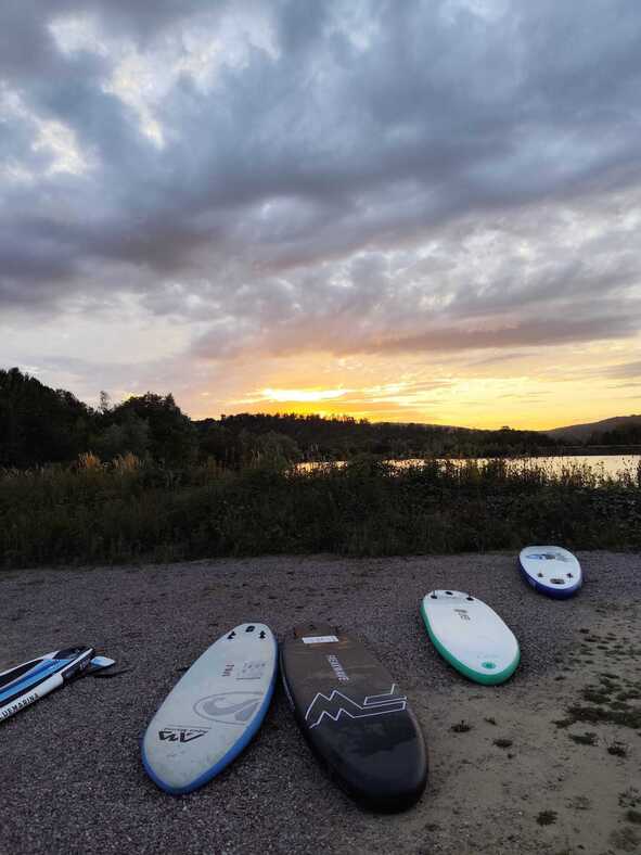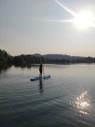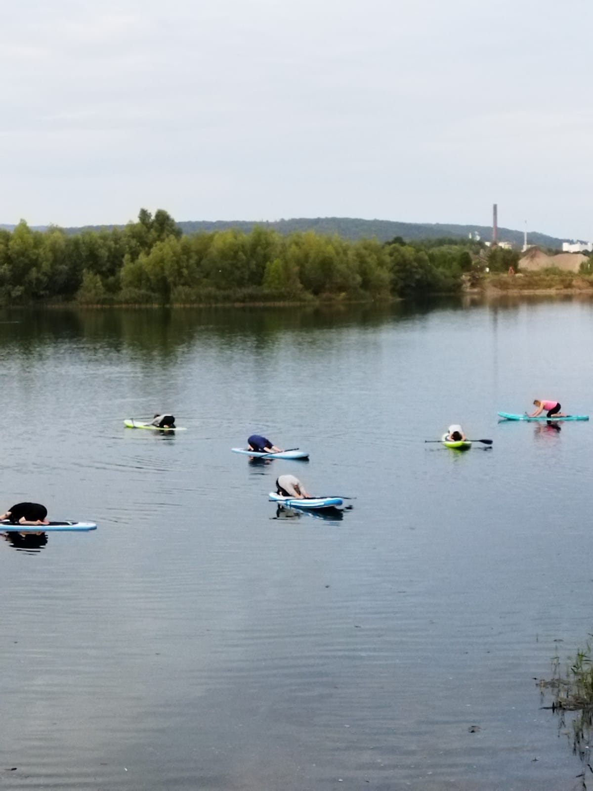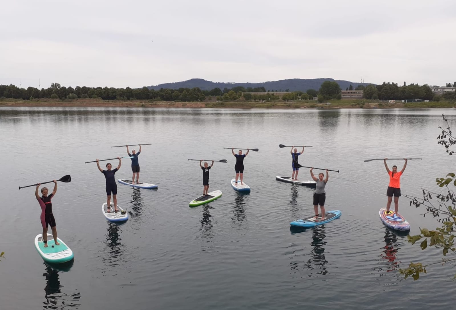 Gerne machen wir auch mal Yoga-Übungen auf unseren Boards. Absolute Voraussetzung um am Training teilzunehmen ist, dass man ein sicherer Schwimmer ist und auch keine Angst hat mal ins Wasser zu fallen. Wenn ihr ein eigenes Board habt, könnt ihr dieses natürlich gerne mitbringen.