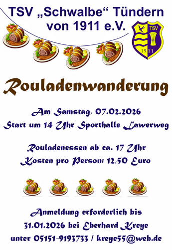 Letztes Jahr gab es die "Grünkohlwanderung" und dieses Jahr gibt es die "Rouladenwanderung" - macht mit und meldet Euch an!